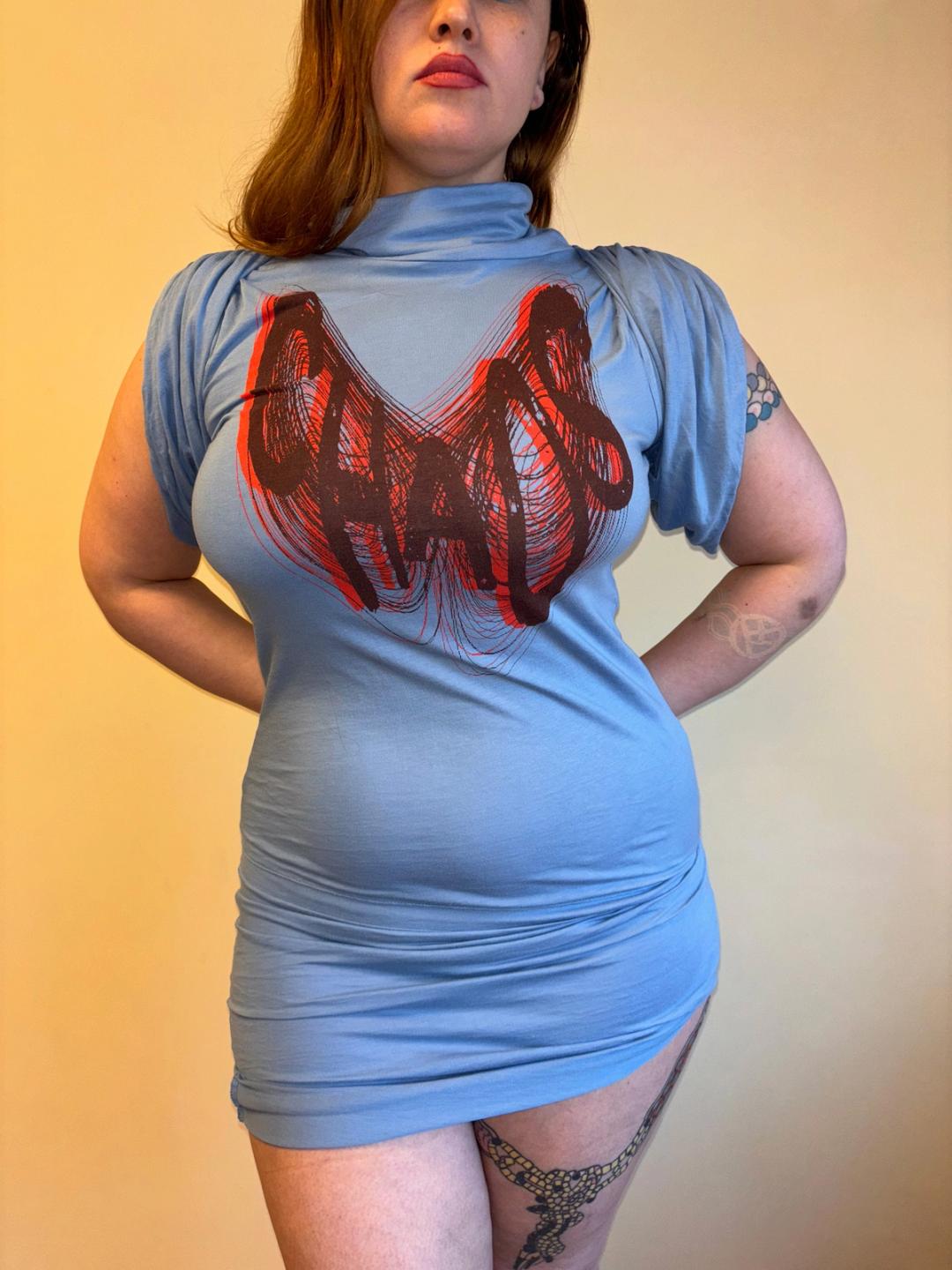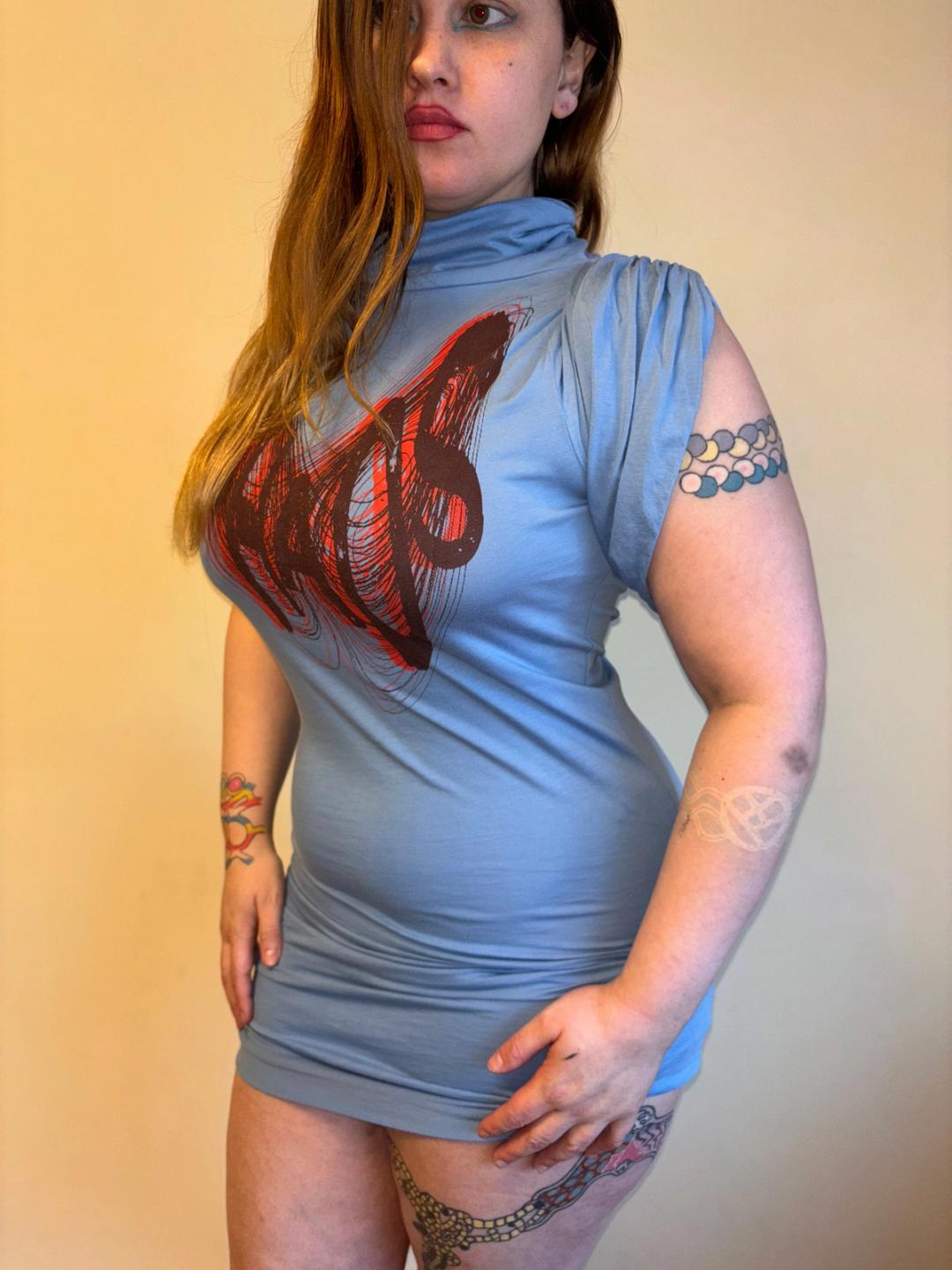 Rare 00s Vivienne Westwood Red Label "Chaos" dress. The dress has deformed scrunched sleeves and mock neck. Flattering fitted style.