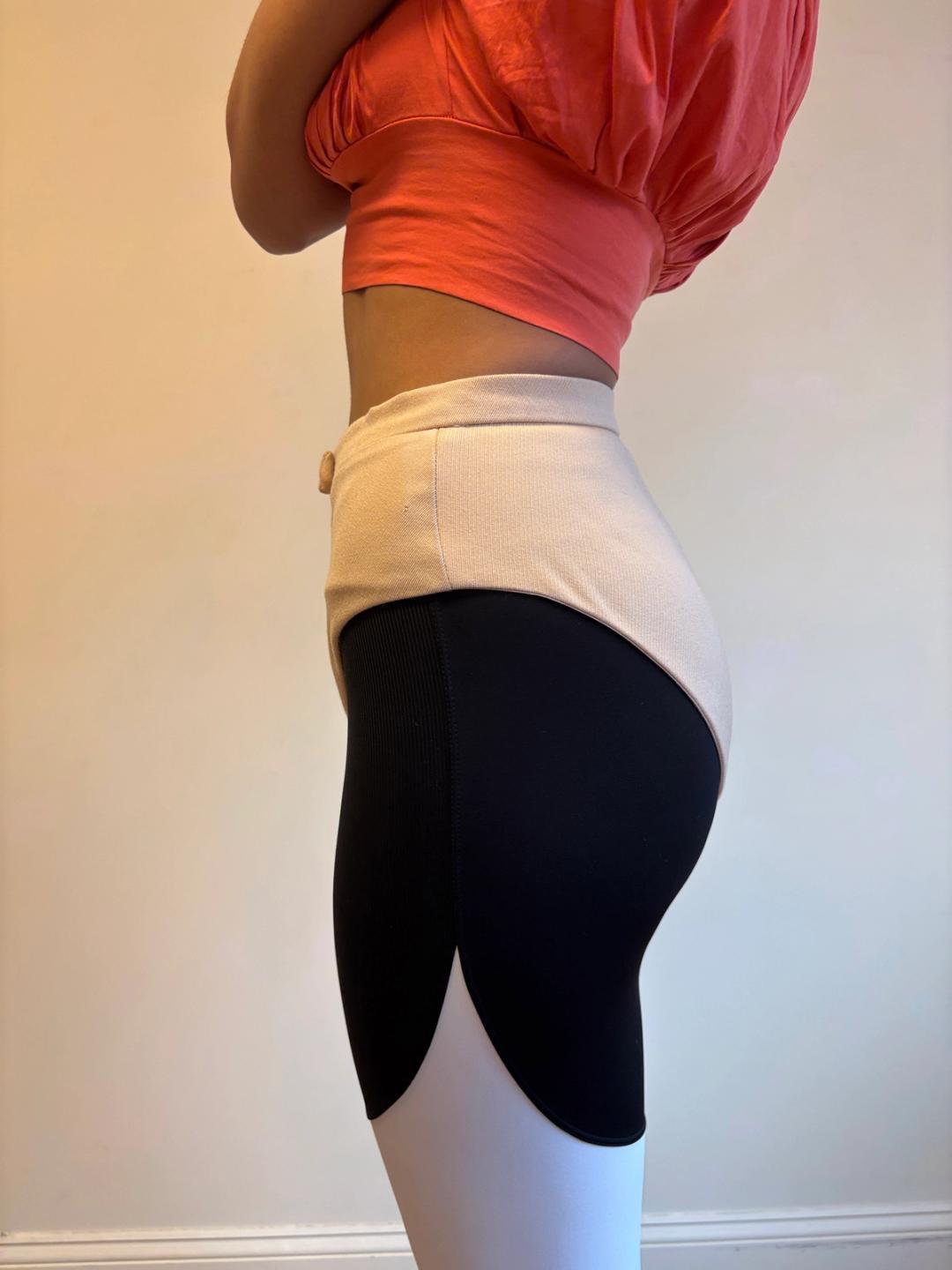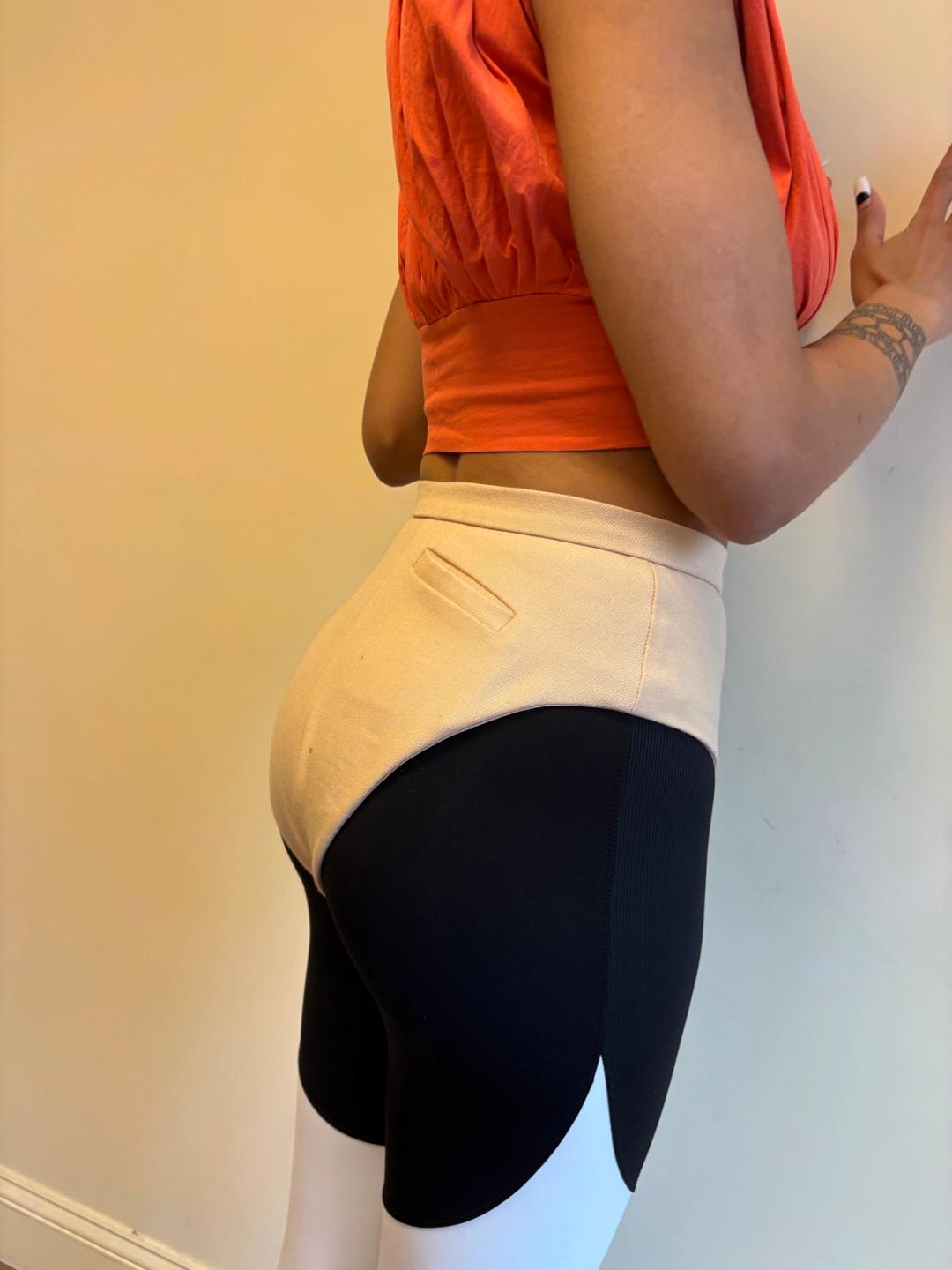 Very rare and collectible Vivienne Westwood Gold Label tan tailored shorts. They are beautifully cut and made with tiny little pockets, lined in classic Westwood flesh-toned satin. They have small stains on the back, please see photos. 100% wool, Made in England.