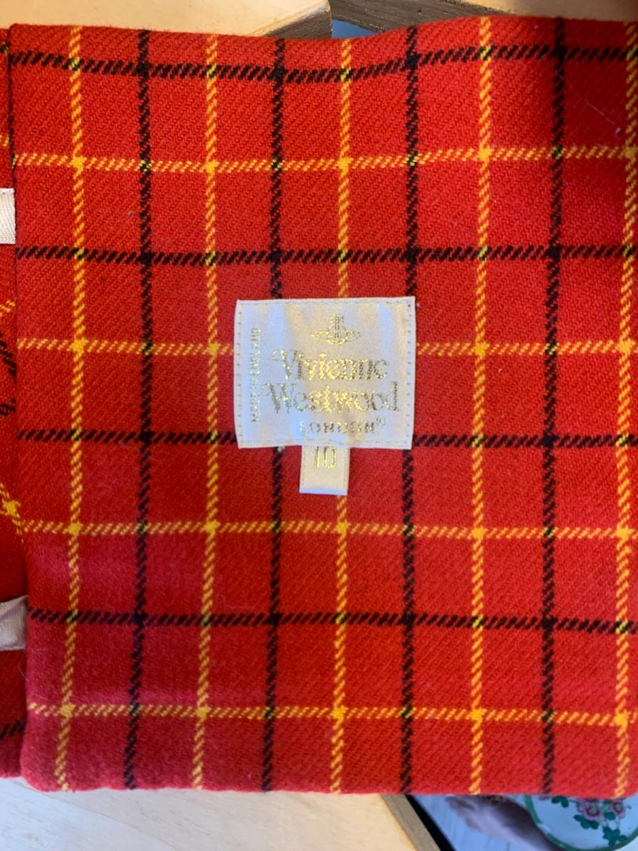 Vivienne Westwood tartan corset from her iconic AW 1996 runway 'Vive la Cocotte'. The outer made in a red, black, and yellow windowpane check wool tartan that is seemingly indestructible, there is a fully boned and power mesh structure underneath giving the body an incredible shape. It is UK size 10, made in England.